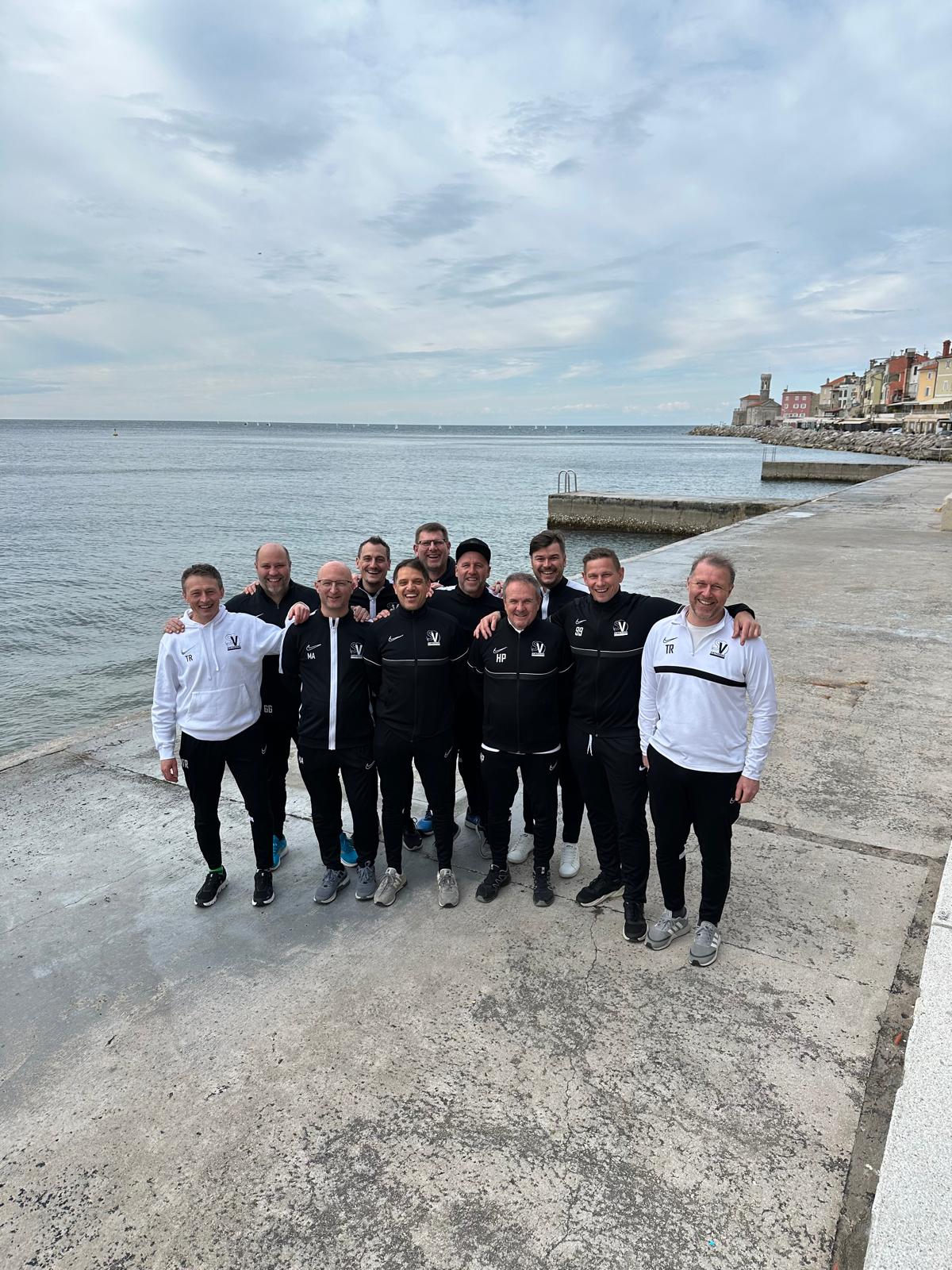 und Obmann-Stv., ein Physiotherapeut, 8 Trainer und 47 aktive Spieler in Richtung Izola, Slowenien,